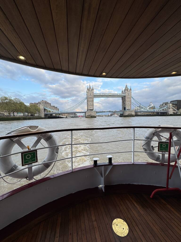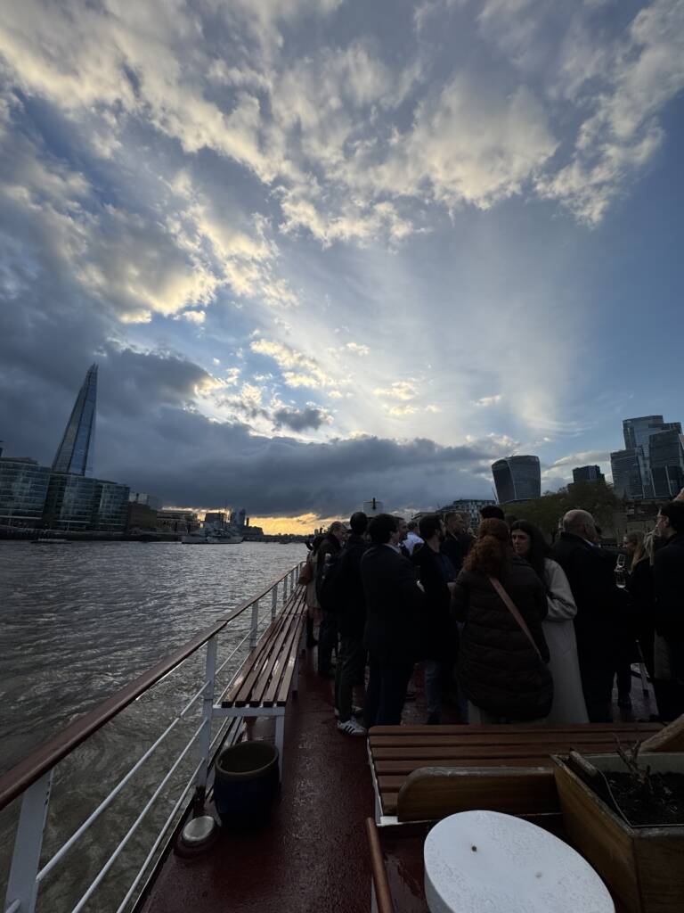 Night one set the tone with a private evening cruise aboard The Edwardian from Thames Luxury Charters. As the boat glided along the Thames, guests enjoyed a three-course dinner paired with unbeatable views of London’s skyline lit up against the night sky.