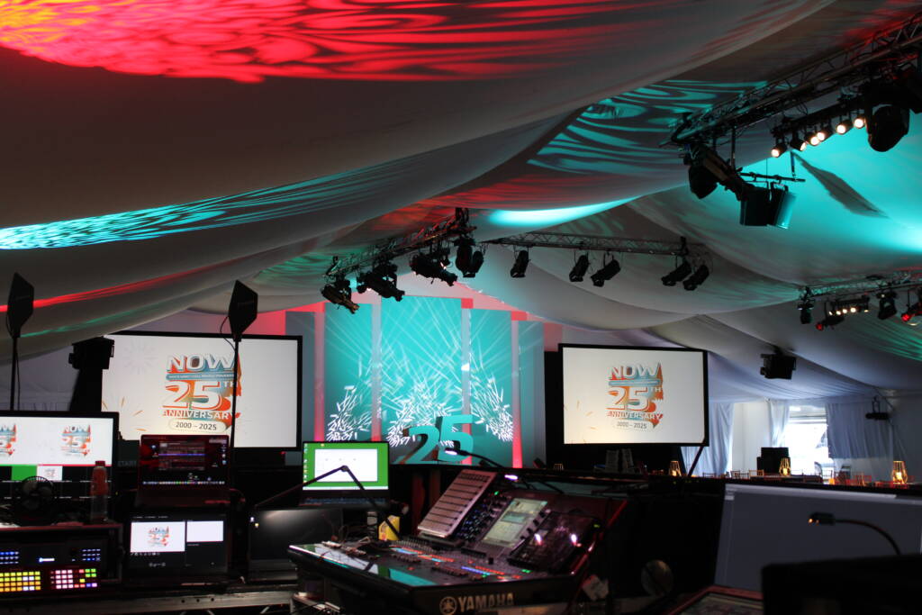 To mark their milestone 25th anniversary, our client wanted to stage a celebration worthy of the occasion – a bold, high-energy summer party for 900 guests that would leave a lasting impression. The concept drew inspiration from the iconic NOW That’s What I Call Music! albums, with a playful twist: NOW That’s What We Call People Powered 25. The theme tied perfectly into the company’s culture of celebrating its people while tapping into the nostalgia of the 2000s.