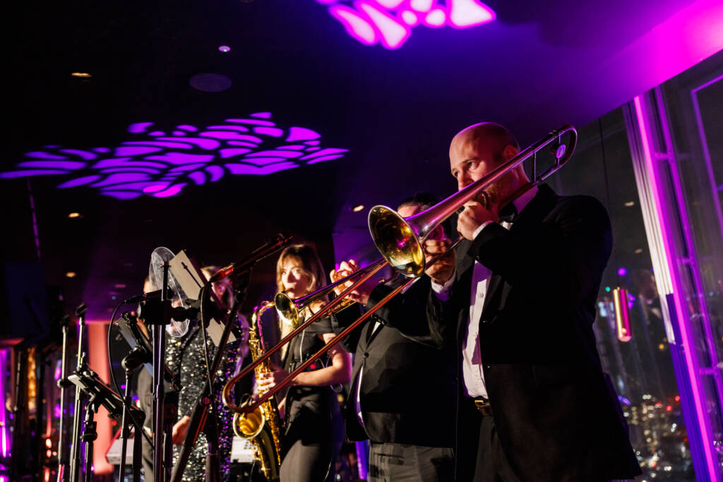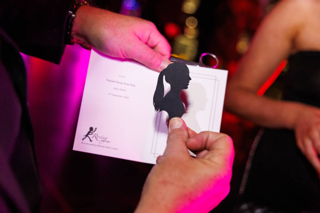 Entertainment was a highlight: a masterful 9-piece show band set the tone with dynamic live music, while roaming performers – a talented silhouette cutter and a masterful magician – added interactive and sophisticated surprises throughout the night. Our team coordinated logistics, timings, and vendor management seamlessly, ensuring the event flowed effortlessly and guests experienced the elevated vibe the client envisioned.