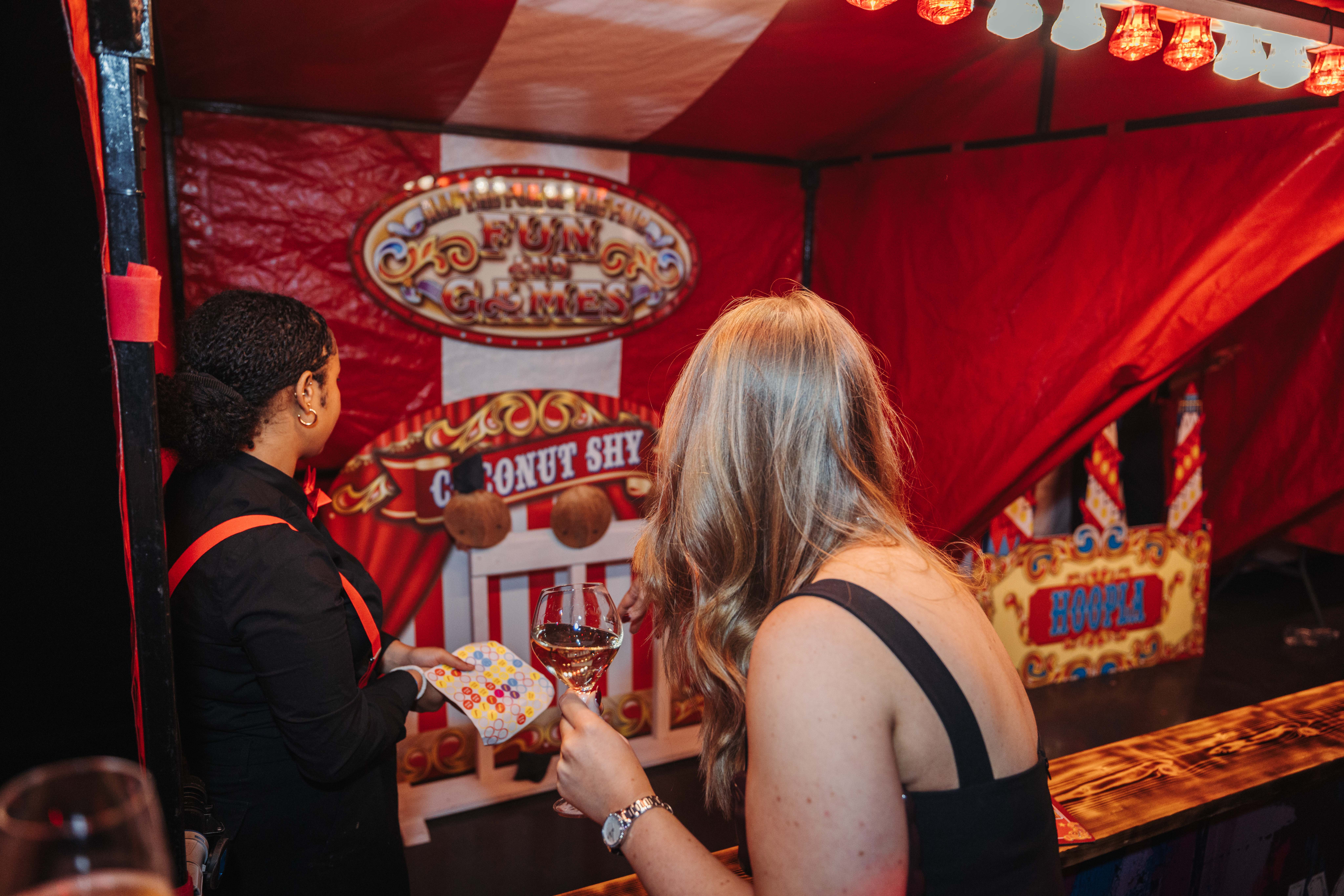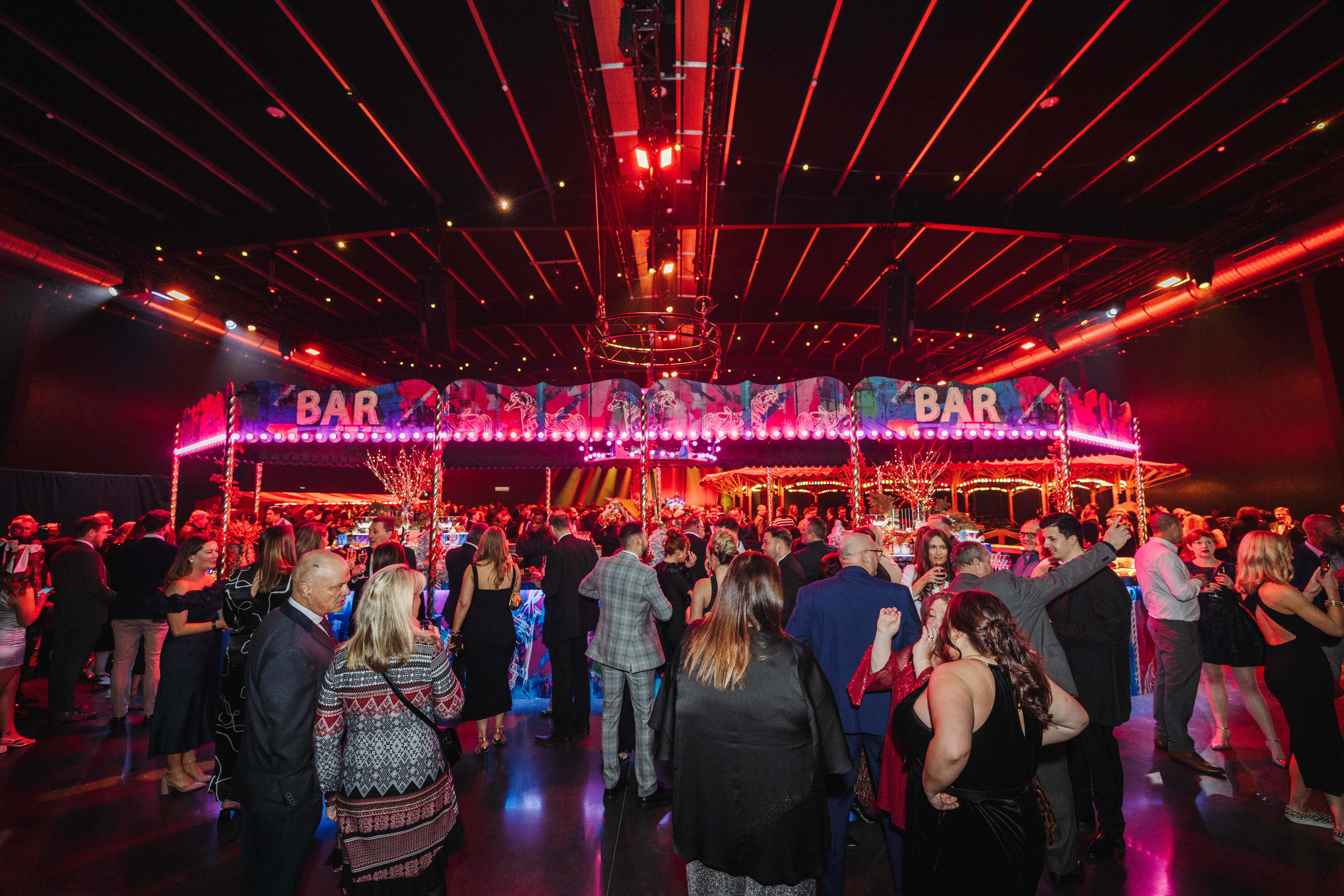 But the adventure doesn’t end there. Head into Space Two, where the energy steps up a notch. This vibrant area is transformed into a dynamic funfair zone with a contemporary twist – featuring iconic attractions such as a central carousel bar and dodgems. Enhanced by dramatic lighting, it provides the perfect backdrop for a lively and unforgettable drinks reception.