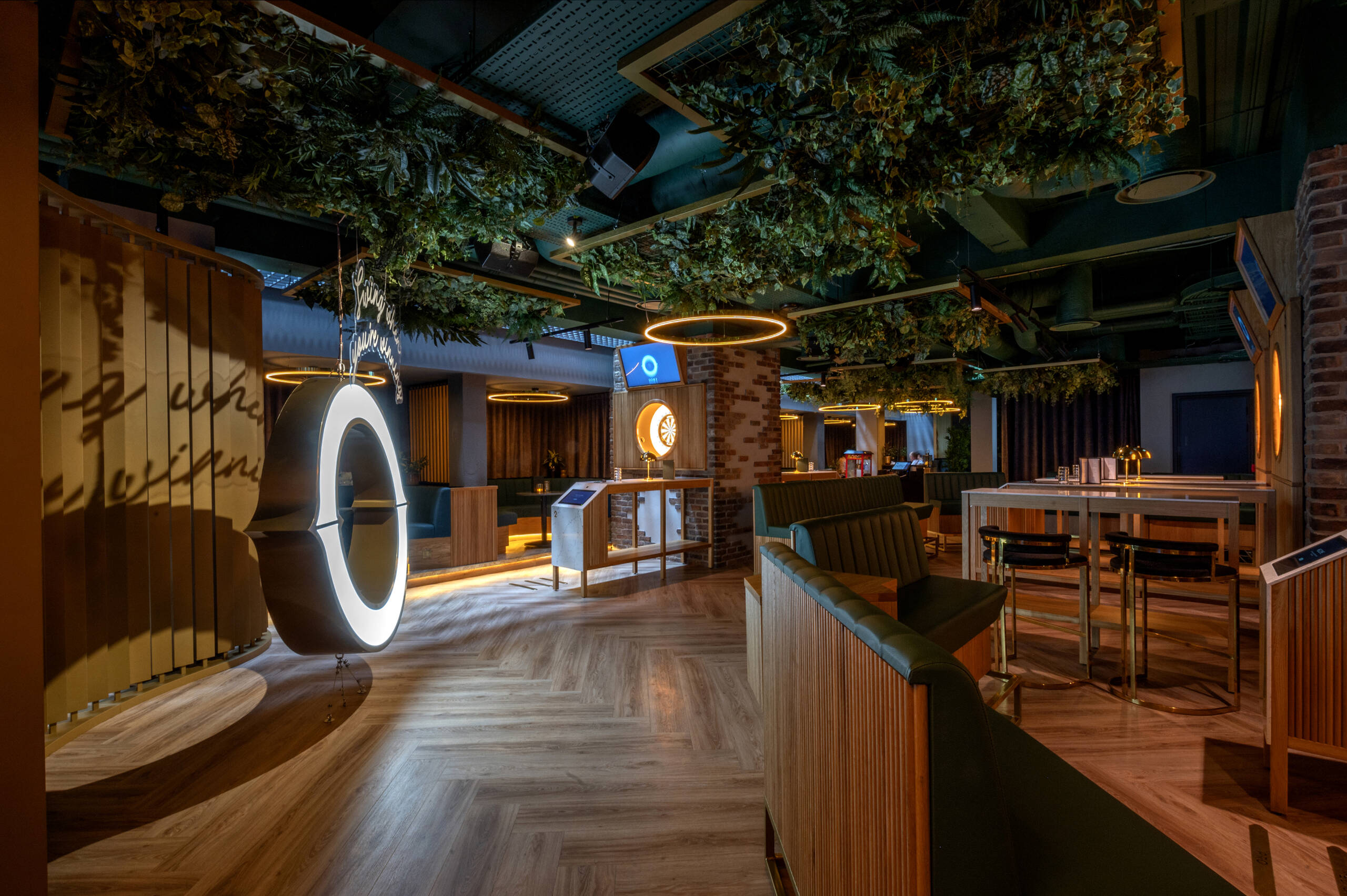 Guests can compete in immersive darts games across tech-enabled oches while enjoying seasonal sharing menus, signature pizzas, and curated drinks. The venue features multiple semi-private zones, a sleek bar area, and a full restaurant space, with capacities ranging from small groups to exclusive hire for up to 330 guests.