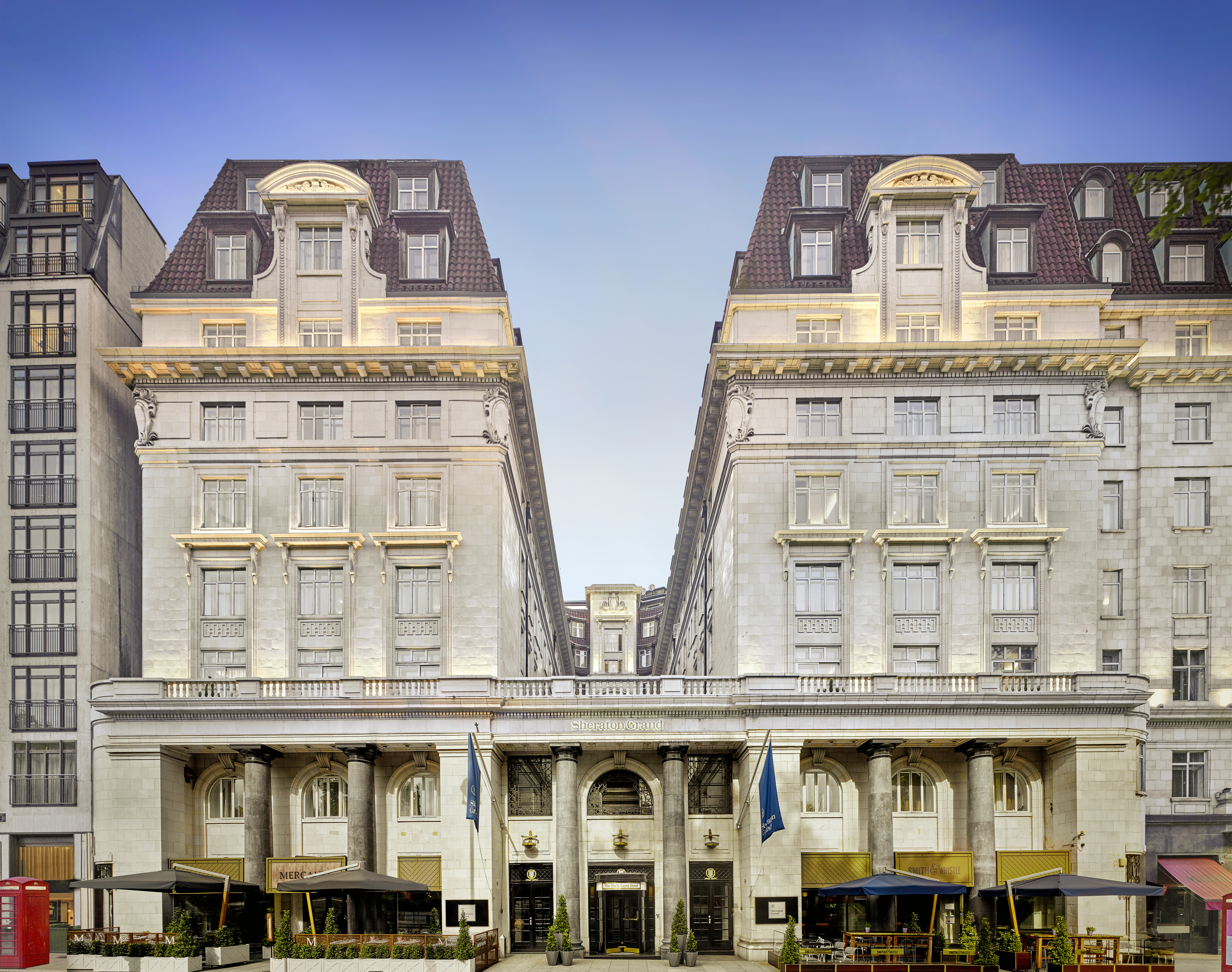 Sheraton Grand London Park Lane sits on Piccadilly, overlooking Green Park. This five-star hotel blends timeless Art Deco elegance with modern sophistication. Originally opened in 1927, it retains many original architectural features today. These include a Grade II listed façade and the iconic ballroom, one of London’s finest examples of 1920s design.