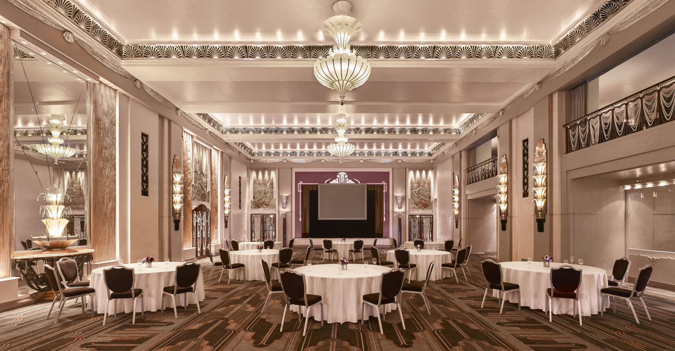 The hotel offers a range of versatile event spaces, ideal for any corporate event. The historic Ballroom provides a dramatic setting for gala dinners and large-scale events, featuring a golden dome and mirrored walls.