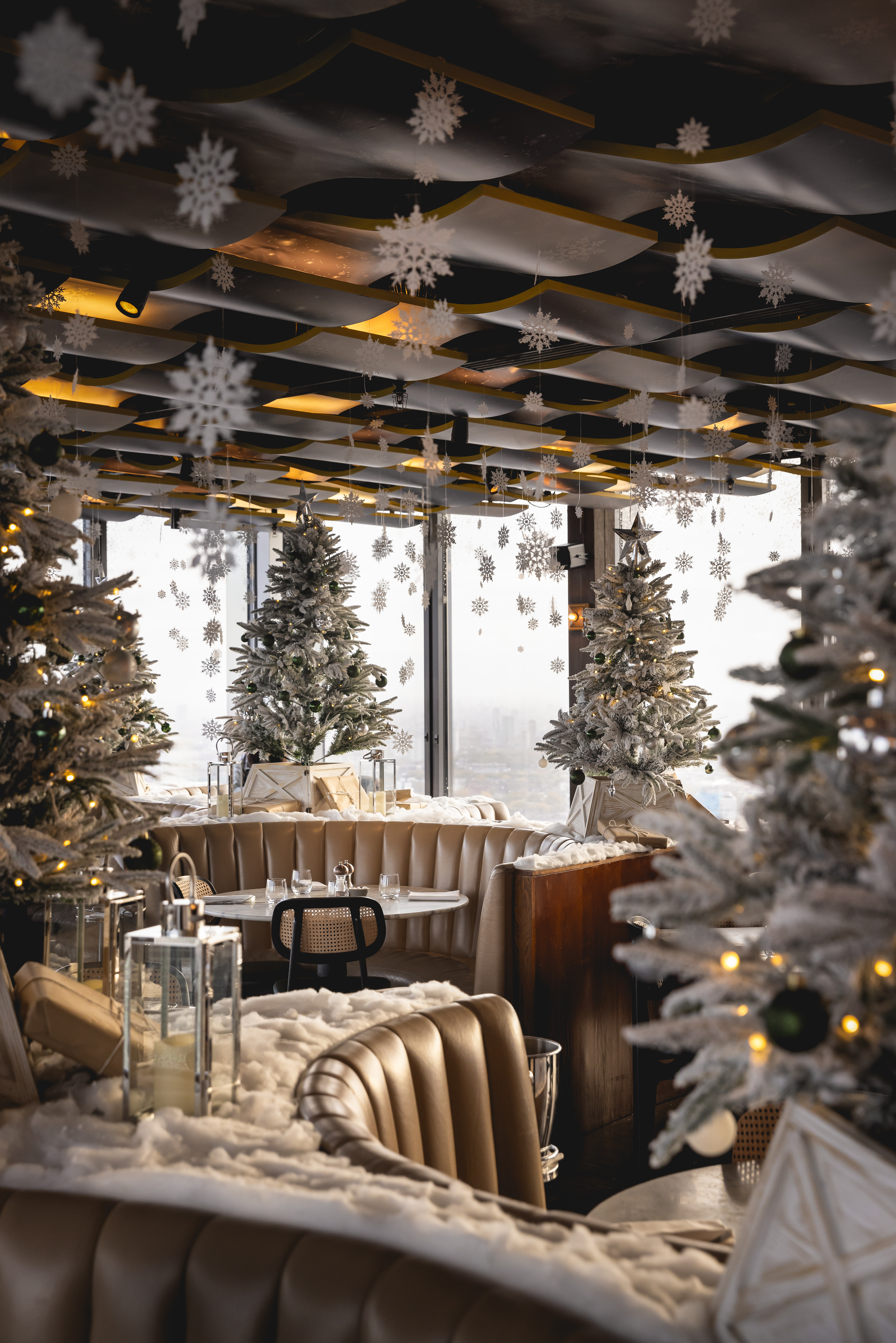 The venue features Europe’s highest outdoor dining terraces. These offer genuinely panoramic views across the City. Guests arrive via two glass elevators. They ascend straight to the 39th floor. The lift journey itself unveils London’s skyline as it travels upwards.