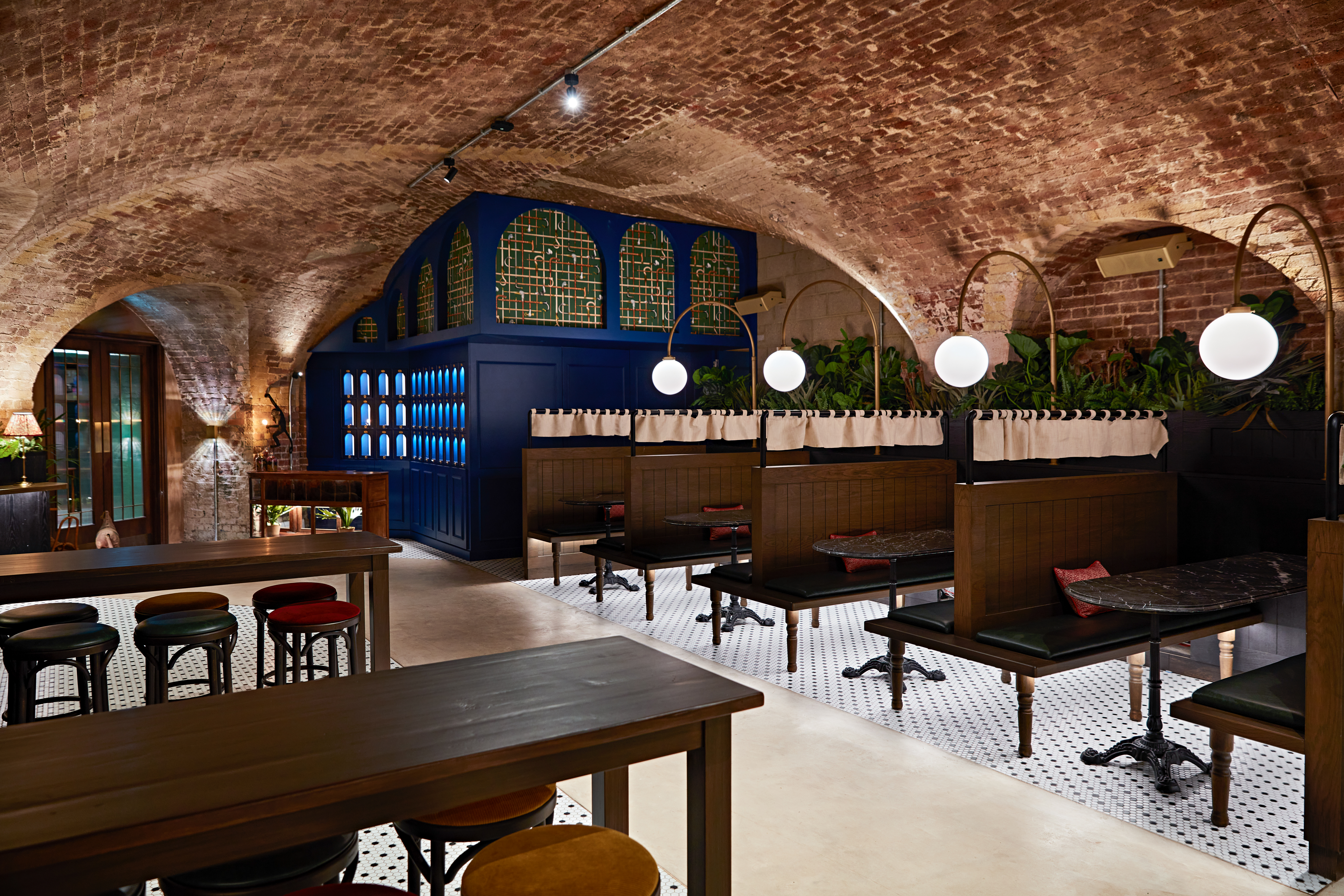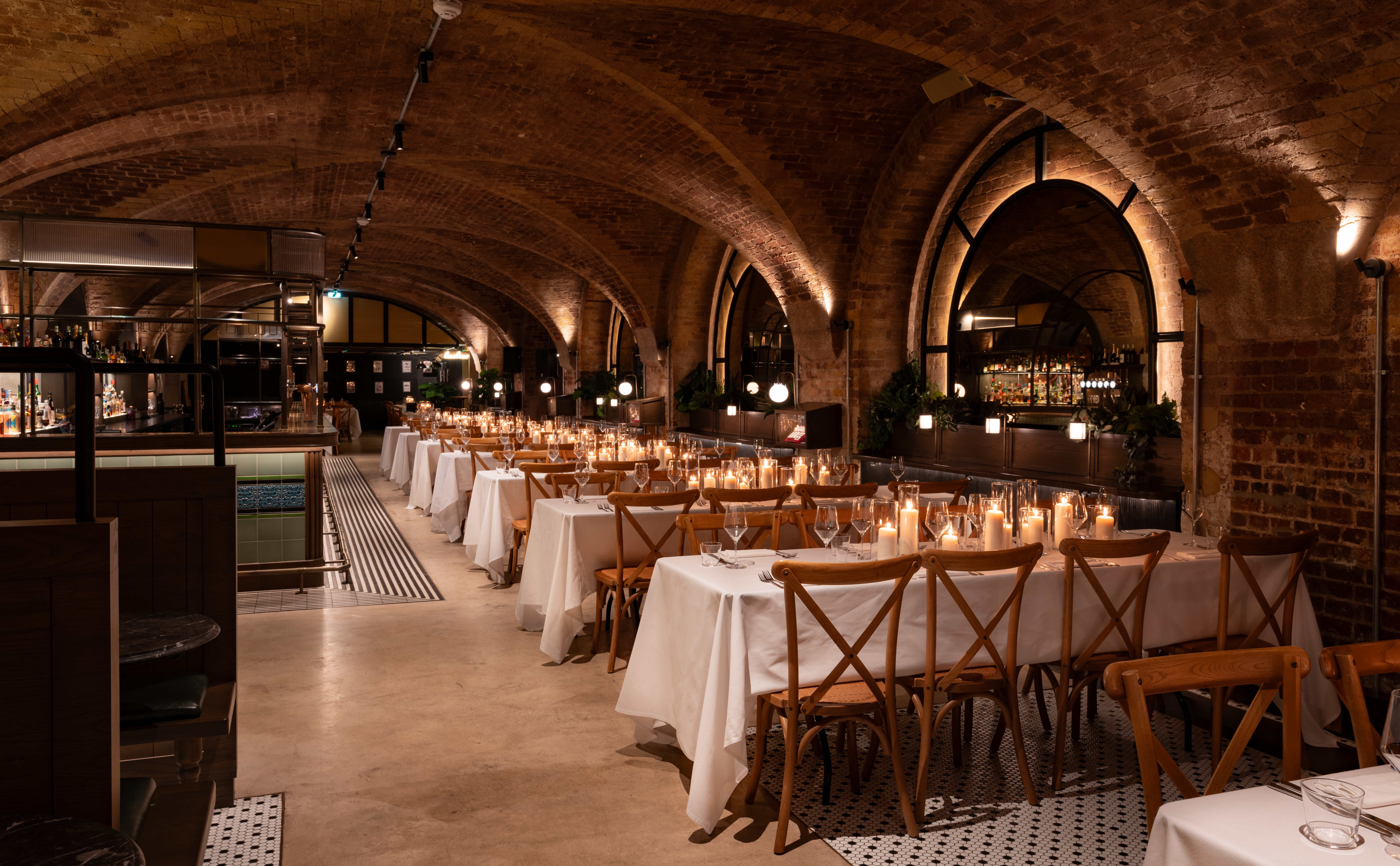 This location was originally the robust vaults for London’s merchant elite. Now, the space beautifully marries this rich history with contemporary flair. Guests will notice the spectacular vaulted ceilings, the presence of luxurious, rich textures, and the dominant, striking central bar that really drives the energy of the whole venue.