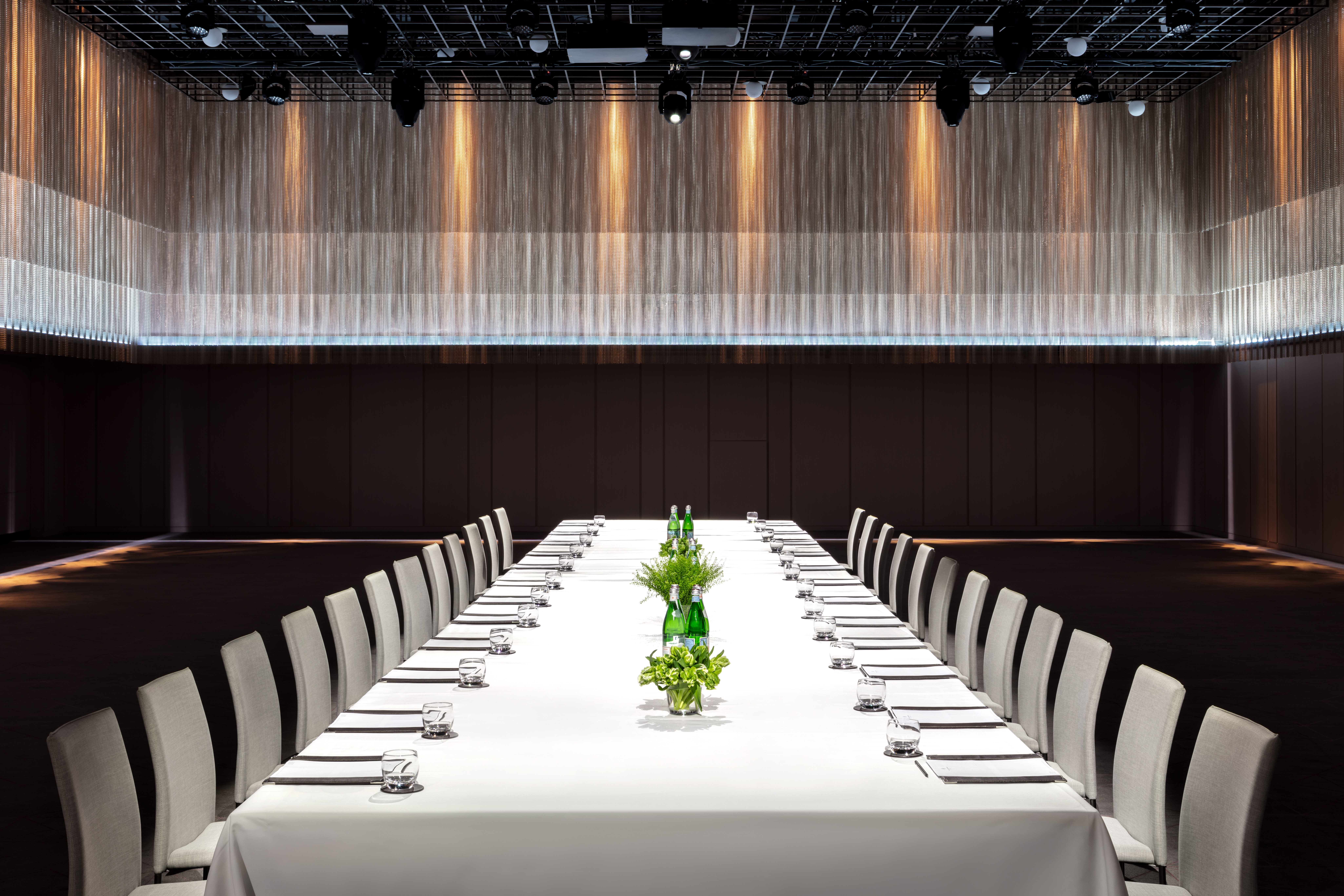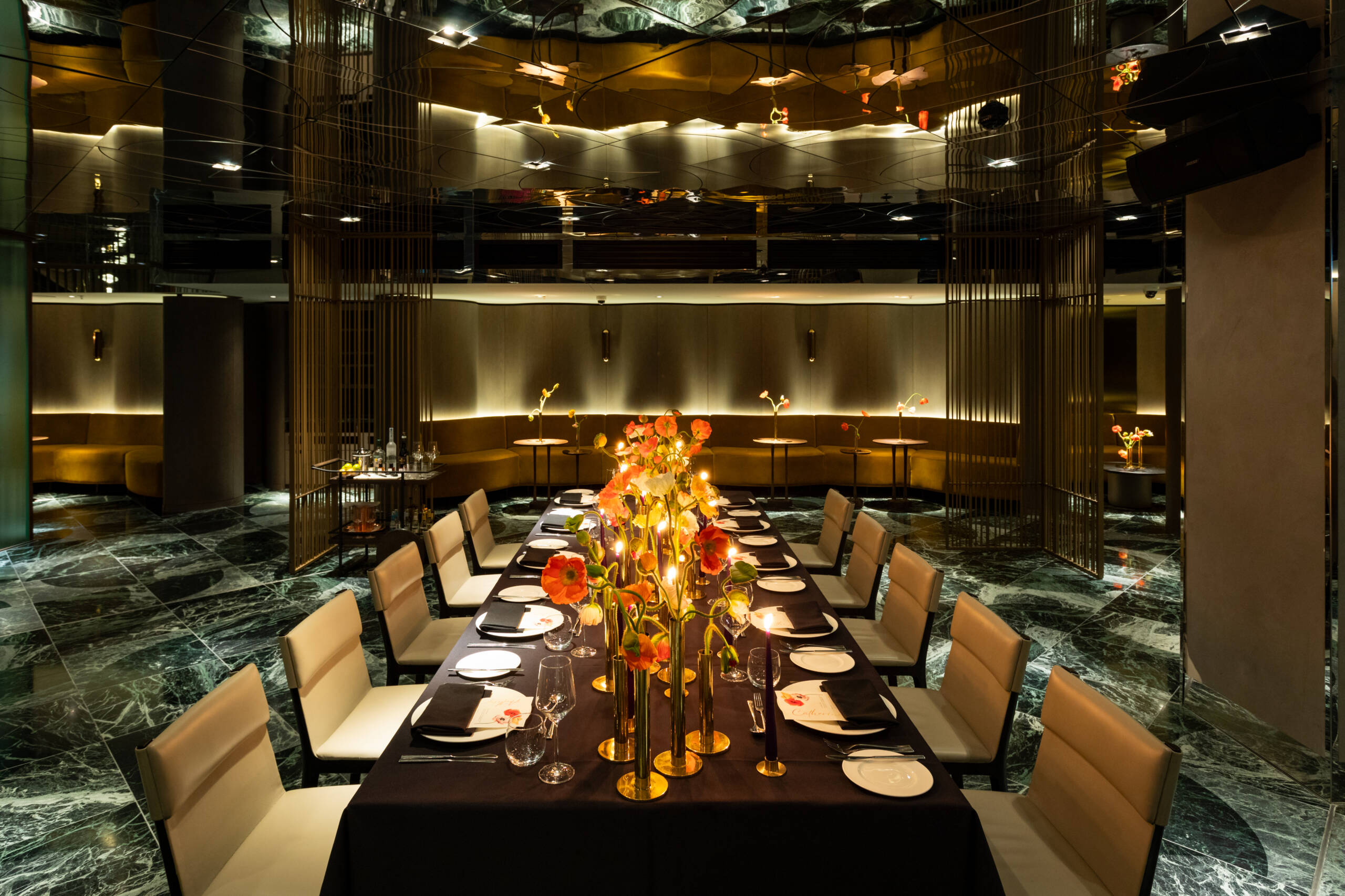 Adjacent spaces include The Green Room, which offers a private bar and dance floor. The Gallery is a multi-functional exhibition area with seven private rooms and hidden cinema screens, each providing a versatile setting for dynamic meetings, private dinners, and celebrations.